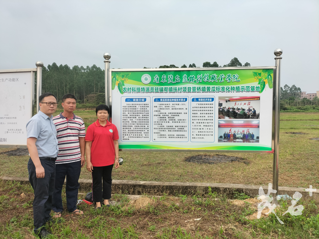 4月18日,广东茂名农林科技职业学院陈列副院长和吴松副院长带领学院农村科技特派员团队来到化州市笪桥镇大沙田村,与笪桥镇人民政府、驻笪桥镇帮镇扶村工作队相关领导共同为化州市笪桥镇黄瓜标准化种植示范基地揭牌。