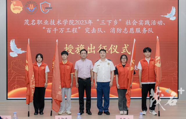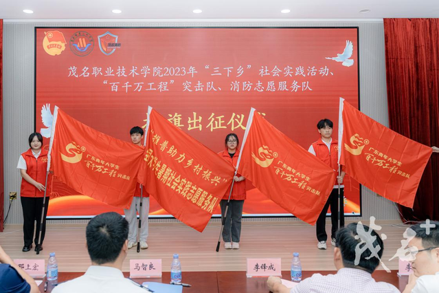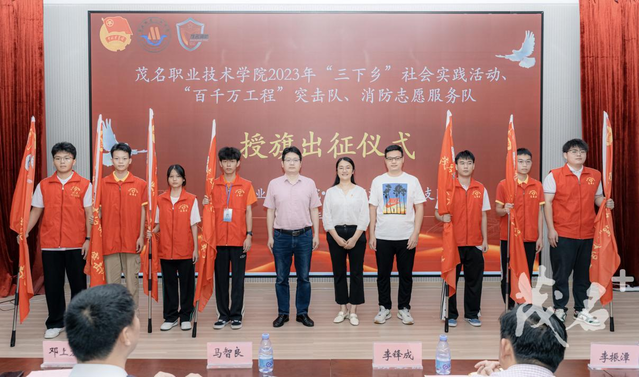 此次活动标志着,茂名职业技术学院2023年社会实践志愿服务队、“百千万工程”突击队、消防志愿服务队正式出征了。2023年茂名职业技术学院组织了5位专家教授带领多支荣获第十七届“挑战杯”广东大学生课外学术科技作品竞赛奖项的大学生志愿者队伍赴高州市根子镇、曹江镇、信宜市镇隆镇、大成镇、池洞镇、化州市笪桥镇、电白区沙院镇开展暑期文化科技卫生“三下乡”社会实践活动。其中,1支队伍入选2023年“推普助力乡村振兴”全国大学生暑期社会实践志愿服务活动项目,“紧跟总书记复兴脚步,高校新媒体助力振兴”、“‘成’邀你来-打造生态旅游综合体,助力乡村振兴”、“地空联合的智能采摘机器人助力荔枝等水果产业高质量发展”等3支队伍项目入选广东青年大学生“百千万工程”突击队结对成功行动项目。