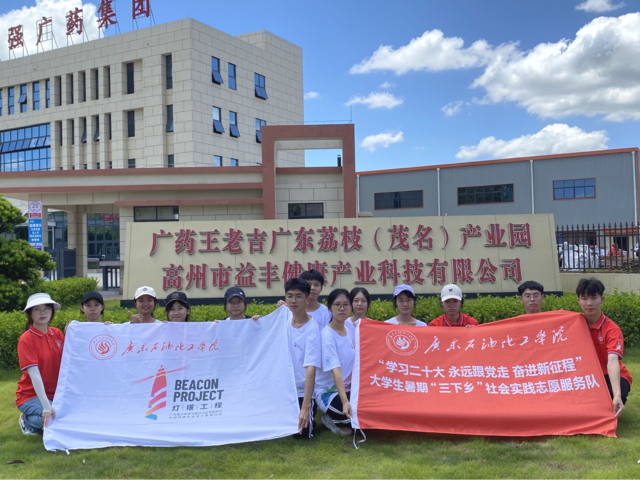 为了助力乡村振兴,聚焦“百千万工程”,稳推“万企兴万村”,7月8日上午,广东青年大学生“百千万工程”优秀示范项目突击队广东石油化工学院“光宝智援”实践队来到茂名市高州宝光街道广药王老吉广东荔枝(茂名)产业园,与产业园建设主体单位高州市益丰健康产业科技有限公司(以下简称益丰公司)的管理和技术专家进行现场交流学习。省市科技特派员吴菲菲博士和李化强博士担任“光宝智援”实践队的指导老师。