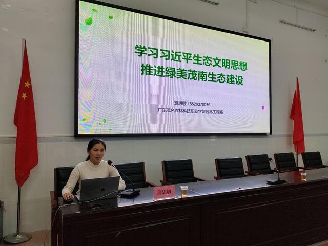 近日,广东茂名农林科技职业学院积极参与茂南区“讲绿行动”,贯彻落实“绿美茂南”工作部署。3月13日下午,该学院园林工程系教师受邀参加河西街道办事处“学习习近平生态文明思想,推进绿美茂南生态建设”主题宣讲会,持续推进“讲绿行动”。