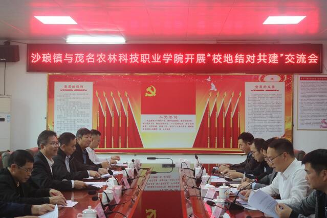 广东茂名农林科技职业学院与沙琅镇人民政府双方人员就结对共建工作具体事宜进行深入交流研讨,与会者积极发言,交流思想。陈广金介绍了沙琅镇的基本情况,并列出了沙琅镇急需的共建项目任务情况表。黎华勇就萝卜产业发展、龟鳖产业、文化对接、农产品直播等存在的问题与在会的专家一一交流,对学院前期在百千万工程中取得的成效给与充分肯定,他表示,要整合校地优势资源,打造高素质人才队伍建设,实现结对联动、共同发展的目的,推动双方取得更大发展。