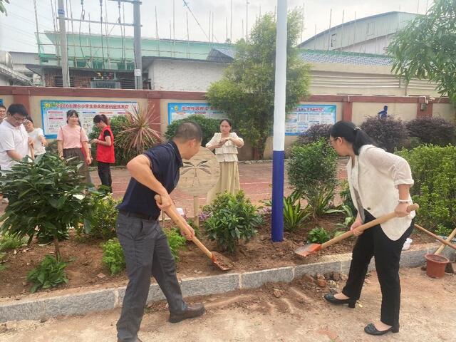 为深入学习贯彻习近平生态文明思想和习近平总书记视察广东重要讲话、重要指示精神,认真落实省委、市委关于推进绿美生态建设的部署要求,进一步发挥基层战斗堡垒作用,4月11日,广东茂名农林科技职业学院党委委员、纪委书记刘育兰,园林工程系党支部书记黄永辉及园林工程系党支部全体党员教师和学生志愿者前往茂南区新坡镇汝嘉小学开展“绿美茂名·园林先行”的主题党日活动。围绕“高质量党建推动教育高质量发展”的目标,以“党建+”品牌创建为契机,为乡村生态振兴、人居环境改善作出农林贡献。