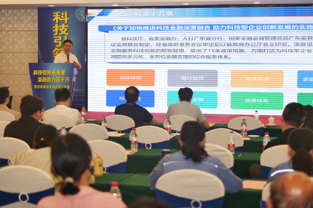 广东省生产力促进中心主任 、广东省科技金融促进会会长陈金德向我市关心、支持和推动科技金融工作的各级部门及各界人士表示衷心感谢。他指出,科技和金融是推动经济社会发展的两大引擎,大家要充分认识科技金融在推动科技创新、促进产业升级、优化资源配置等方面的重要作用,以更加开放的姿态、更加务实的举措,推动科技金融深度融合。科技部门要多渠道、多形式加强科技金融政策的宣传和解读,帮助企业更好地了解和利用政策,确保政策红利能够转化发展实效;要加强科技创新体系建设,推动产学研深度融合,培育更多具有核心竞争力的科技企业;要重视人才培养和引进工作,为科技创新提供坚实的人才保障。