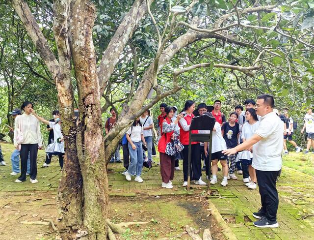 平定镇积田村党支部书记尤锋光为师生介绍百年橘红树生长状况,有效助力提高学生们对化橘红产业的认知度,真实感受化橘红的文化魅力,进一步推动学院科研创新,培养具有创新精神和实践能力的学生。