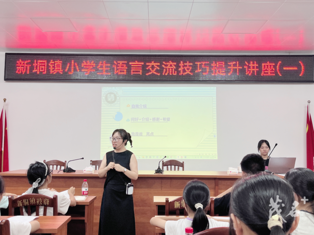 广东茂名幼儿师范专科学校一直以来认真贯彻落实党的二十大精神和省委关于实施“百县千镇万村高质量发展工程”促进城乡区域协调发展的工作部署,全面落实《广东省“百县千镇万村高质量发展工程”教育行动方案(2023—2027 年)》,以头号工程的力度扎实推进“百千万工程”教育行动,全力助力我市乡村教育优质均衡发展,切实推动教育强市兴镇带村。6月2日,广茂幼师协助新垌镇政府联合中远海运散运驻镇帮镇扶村工作队开展小学生语言交流技巧系列讲座,该校领导高度重视此次教育帮扶项目,选派文学院教研室主任、广东省普通话水平测试员、第五届中华经典诵写讲全国总决赛二等奖获得者田飞老师授课培训。