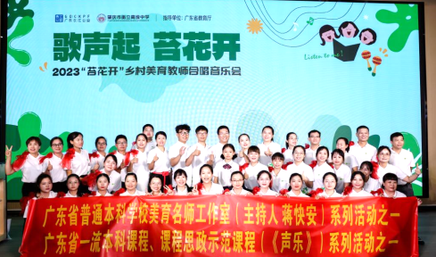 美育浸润团队连续4年为茂名地区20余所乡村学校提供高质量帮扶,涵盖美育课程构建、实践活动开展、校园文化培育、教师团队建设以及美育教育教学研究五大方面,开设了合唱、舞蹈、书法、剪纸等多样化美育课程,受益学生超过1万人。2023~2024年,美育浸润团队先后前往化州市新安镇榕树小学、蛇塘小学,羊角镇竹营小学、高州市团结学校等乡村学校开展10场高雅艺术进校园活动。