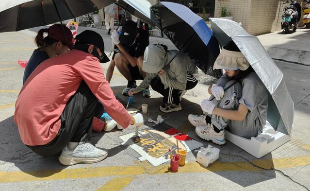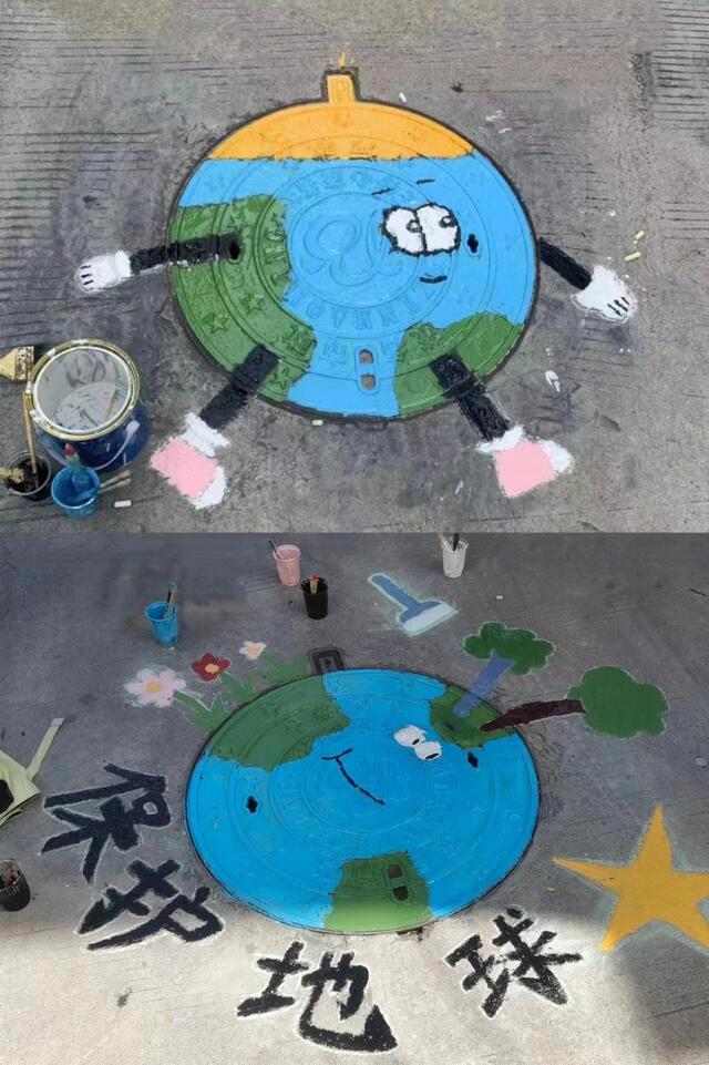 活动中,“鳌”动青春实践团成员们充分发挥专业特长和创意想象,将原本平凡无奇的井盖变成了色彩斑斓、图案各异的艺术品。实践团成员们根据井盖的位置、形状和周边环境,精心设计图案,每一个井盖都承载着团队成员的心血与巧思,成为了社区中一道道亮丽的风景线。他们或蹲或跪,专注地描绘着每一个细节,汗水浸湿了衣衫,却掩盖不住脸上的笑容与成就感。居民们纷纷驻足观赏,对这样的创意之举赞不绝口,表示这样的变化让社区变得更加有活力和温馨和谐。