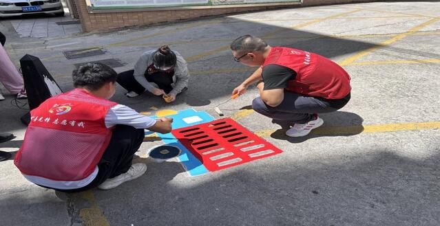 在绘画现场,志愿者们更是直接参与到创作中来。他们中不乏绘画爱好者,有的擅长工笔细描,有的则擅长大胆泼墨。他们与“鳌”动青春实践团的成员们并肩作战,或在一旁指导大学生们如何更好地融合传统元素与现代审美,或亲自上阵,在井盖上留下自己独特的艺术印记。这种合作,不仅让井盖上的图案更加丰富多彩,更在无形中搭建起了一座沟通的桥梁,让不同年龄、不同背景的人们在艺术的海洋中找到了共鸣。直接拿起画笔,与“鳌”动青春实践团成员们并肩作战,共同为美化家园贡献力量。