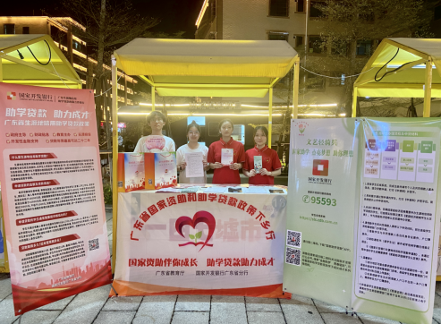 团队深入茂名市茂南区金塘镇油城墟、电白区水东镇西湖公园、化州市播扬镇与新安镇、湛江市徐闻县等地,在人员密集的镇墟、市场等地摆摊设点,为吸引更多群众关注,在现场进行美声歌曲演绎、竹笛乐器演奏。他们顶着烈日,披着月光,穿梭在街头巷尾派发资助宣传手册,耐心地向过往的居民和学生介绍手册里资助项目的申请条件、资助标准和申请流程,确保信息准确无误地传递到每一位群众耳中。