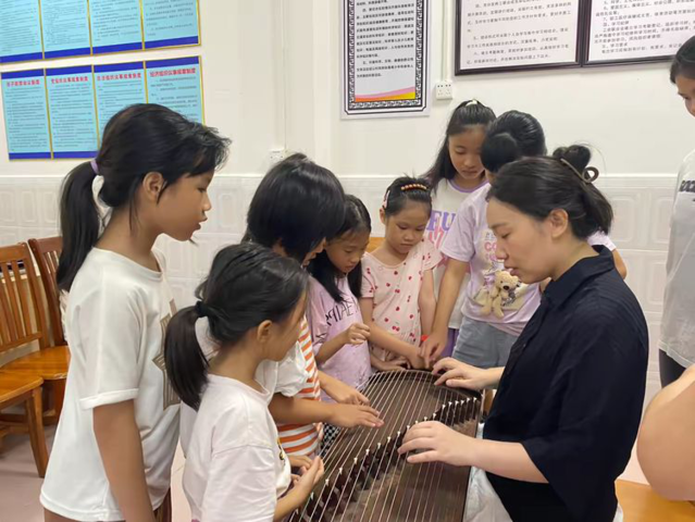活动开展的后期阶段,广东石油化工学院艺同前行实践团推出的古筝课程也正式开课了,该课程由广东石油化工学院艺术学院的李奕兰副教授及多位专业古筝老师联袂授课,旨在培养儿童对古筝艺术的兴趣与热爱。