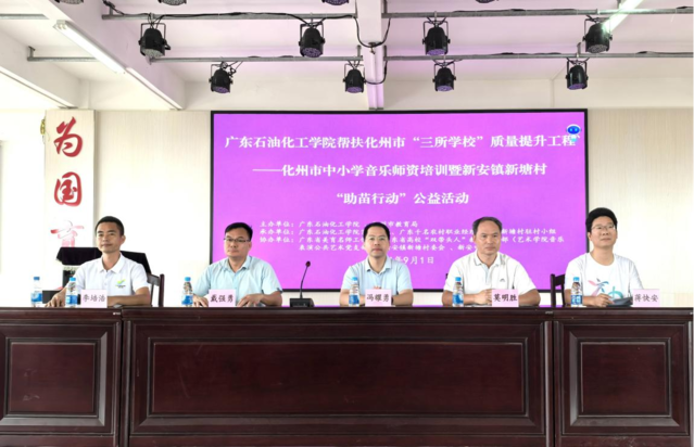 茂名网讯 9月1日,阳光明媚、艳阳高照,广东石油化工学院携手化州市教育局及新安镇新塘村,共同举办了一场意义非凡的师资培训及公益活动。活动以提升化州市“三所学校”新安镇中小学音乐教育质量为核心,通过一系列精心策划的培训和文艺展示,不仅增强了当地美育教师的专业技能,还为新塘村的孩子们带来了温暖与关爱。