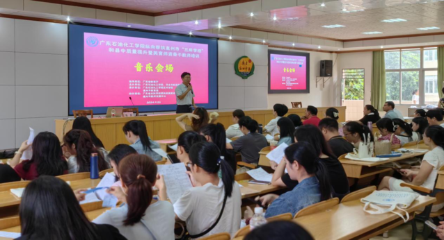 茂名网讯 9月21日,广东石油化工学院在高州市成功举办纵向帮扶“三所学校”和县中质量提升暨美育师资培训活动。活动由广东石油化工学院、茂名市教育局主办,艺术学院、高州市教育局承办,广东省本科学校美育名师工作室、高州市教师发展中心协办。广东石油化工学院党委常委、副校长孙国玺,茂名市教育局党组成员、副局长张镇彪,高州市委教育工委副书记、市教育局党组副书记韦亮,高州市教育局副局长周运昌,艺术学院党委书记郑凌云、副院长蒋快安等出席了开班仪式,高州市近600名美育教师参加。