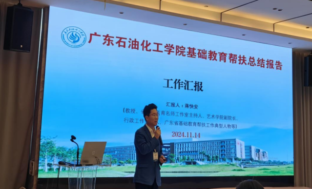 茂名网讯 为深入学习贯彻全国教育大会的精神,推动落实基础教育全口径全方位融入式帮扶,11月12-14日,广东省第三期全口径全方位融入式帮扶专题研修班在韩山师范学院举办。广东石油化工学院艺术学院副院长、广东省本科学校美育名师工作室主持人、广东省全口径全方位融入式帮扶工作典型人物蒋快安教授应邀在会上代表学校作了题为“学校帮扶地方基础教育工作总结”的经验分享。