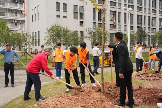 活动现场,师生们热情高涨、干劲十足。大家分工协作,挥锹铲土、扶苗填坑、培土围堰、提桶浇水……经过两个多小时的辛勤劳动,85株宫粉紫荆树苗迎风挺立,为初春的校园增添了勃勃生机。
