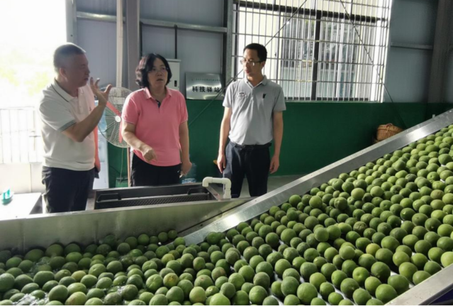 董艳清一行在广东深融生态产业有限公司观摩化橘红分拣加工现场