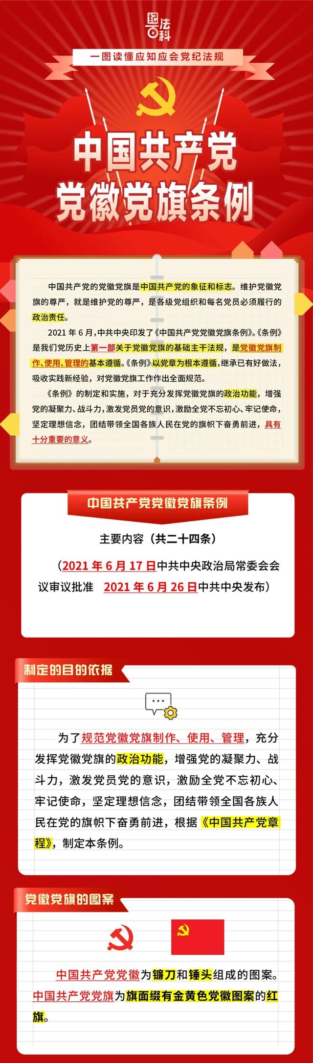 一图读懂《中国共产党党徽党旗条例》