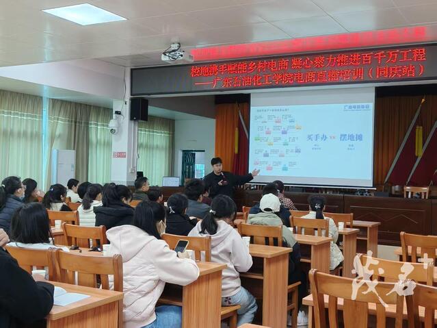 为深入贯彻落实广东省“百千万工程”战略部署,深化校地协同育人机制,精准赋能乡村电商产业发展,12月26日上午,由化州市同庆镇人民政府与广东石油化工学院经济管理学院联合主办的“校地携手赋能乡村电商 凝心聚力推进‘百千万工程’”电商直播培训班在同庆镇成功举办。本次培训聚焦乡村电商从业者实际需求,精准对接产业发展痛点,为当地电商从业者、创业青年及村干部量身打造了一场兼具理论深度与实操价值的专业赋能活动。