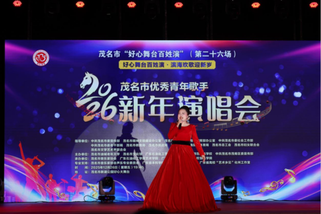 广东石油化工学院艺术学院音乐表演公共艺术教师联合党支部作为全省高校“双带头人”教师党支部书记“广东行”专项建设单位、省级第五批“全省党建工作样板支部”,坚持以党建为引领,深化校地协同合作,深耕文化惠民实践。12月26日晚,由该党支部深度参与协办的“好心舞台百姓演・滨海欢歌迎新岁”2026年茂名市优秀青年歌手新年演唱会,在茂名市新湖公园好心大舞台圆满落幕,千余名现场观众与线上6万余名网友齐聚“云端 + 线下”,共同见证这场兼具思想性与艺术性的文化盛宴。