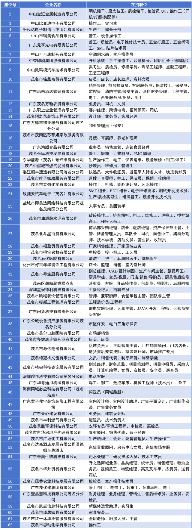 各用人单位和有求职意愿的离校未就业高校毕业生、零工人员、退役未就业军人、茂名本地未就业人员、外出返乡务工人员、城镇失业人员以及其他有就业需求的群体。
