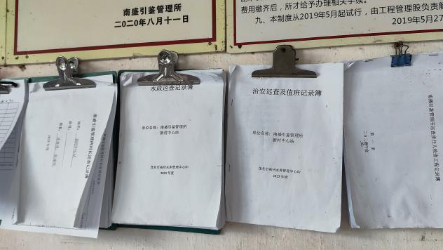 墙上挂着一排各项巡查记录簿