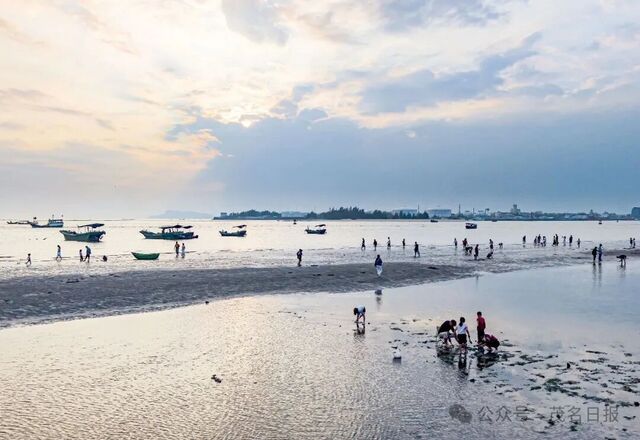 在滩涂上挖螺拾贝、嬉笑奔跑,享受难得的假期惬意。